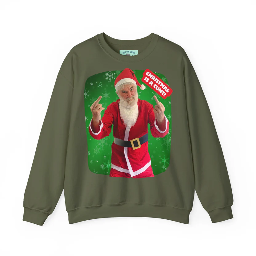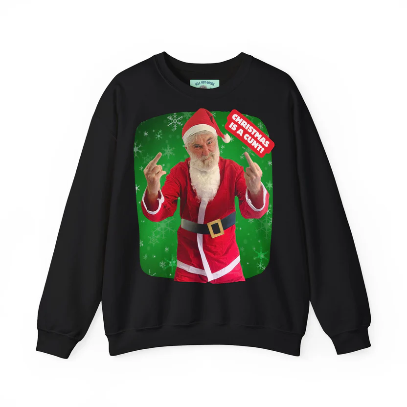 Spend the festive season with your favourite foul mouthed fella! This sweary Santa sweatshirt is the perfect Christmas gift for that special c**t in your life. Wear it on Xmas day to repel unwanted visits from annoying relatives.