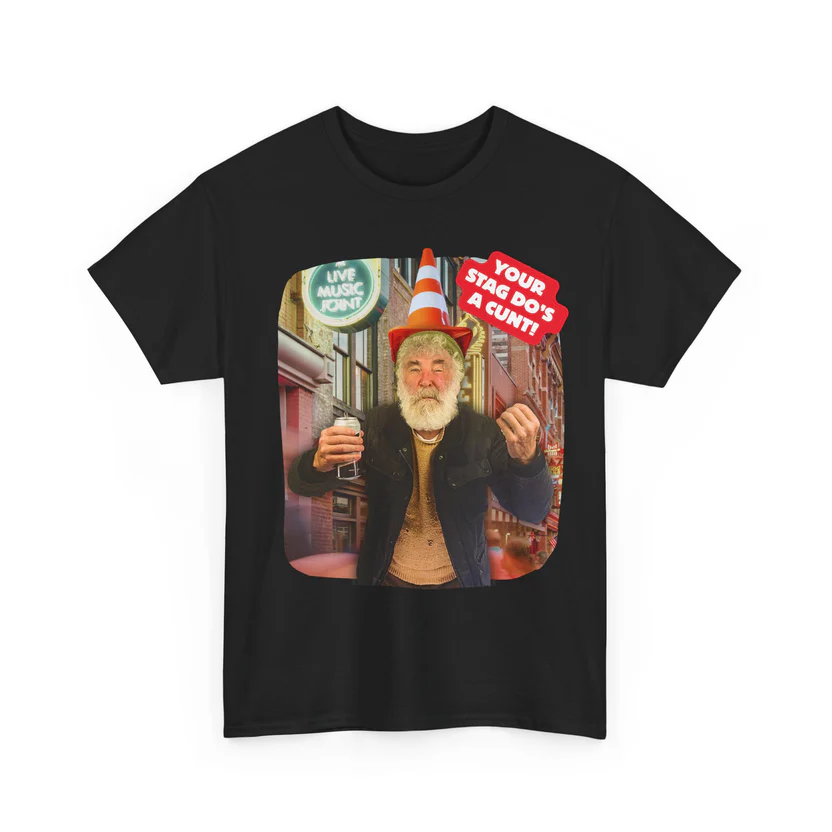 Getting married? What better way for you and your mates to wave goodbye to your freedom than drunkenly marauding around in this c***y t‑shirt! We could tell you that it: